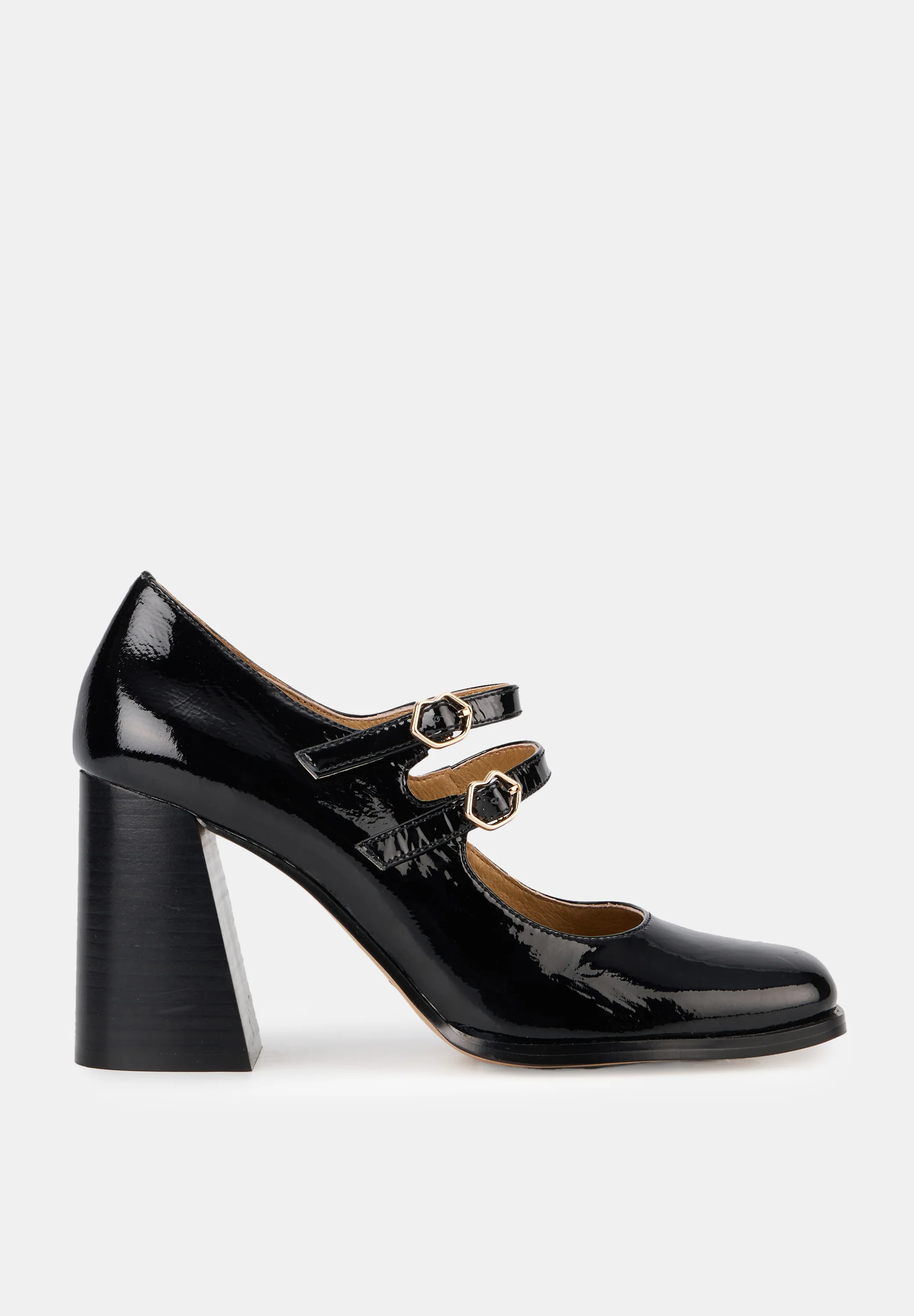 Babies à brides - Cuir Brillant Noir - Alex